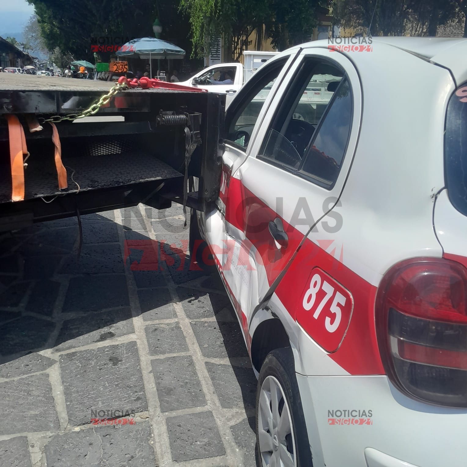 dobló hacia la izquierda con dirección a la calle Cuauhtémoc. Al parecer el taxi que circulaba detrás de la unidad de carga, de alguna manera se impactaría contra la parte trasera de la grúa.