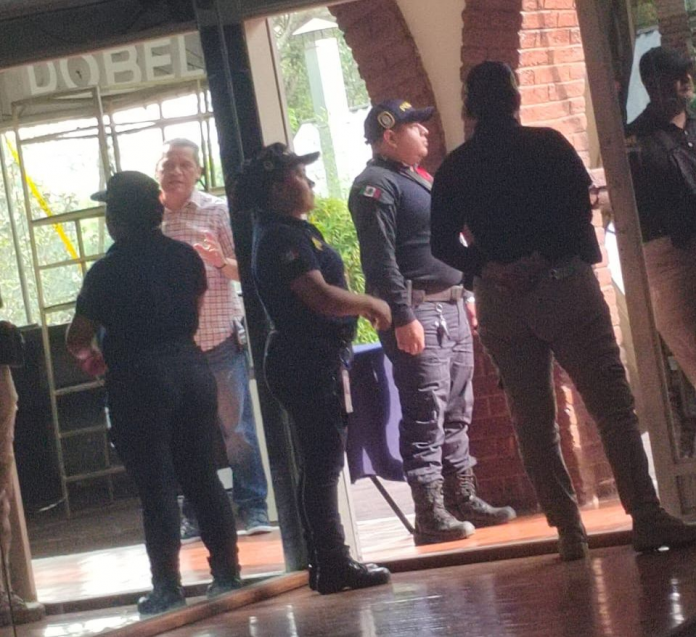 Xalapa, Ver; 18 de abril de 2026.- La mañana de este sábado, elementos de la Policía Estatal ingresaron al Club Britania, ubicado en las Ánimas, de esta capital, luego de que los socios determinaron la destitución del presidente Gerardo Rafael Garza Dávila, quién también es Contralor del Organismo Público Local Electoral (OPLE). Lo acusan presuntamente de malos manejos.