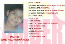 Este jueves se emitió alerta Amber para localizar a Ingrid Sánchez Hernández, de 13 años de edad, en Veracruz.