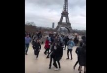 Mexicanos bailando La Chona de Los Tucanes de Tijuana en la Torre Eiffel se...