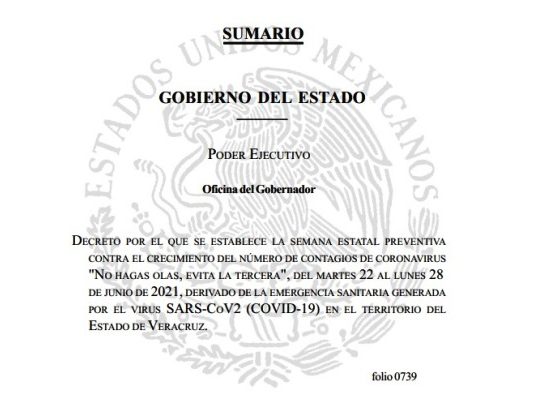Emiten decreto «No Hagas Olas», para evitar nueva ola de contagios Covid-19 en Veracruz