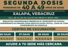 Anuncian aplicación de 2da dosis a adultos de 40-49 de Xalapa