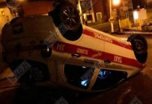 Aparatosa volcadura de taxi en San Marcos deja un herido