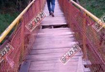 Coatepec, Ver.- Un polín de madera y cuatro tablones, todos desvencijados en el puente de la cascada de Texolo, son los que se rompieron...