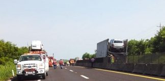 Luego de volcadura de trailer, reabren un carril en la Veracruz-Cardel