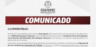 Ayuntamiento de Coatepec cesa a trabajadores del Sindicato del Municipio