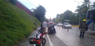 Derrapan cuatro motociclistas en Bulevar Xalapa-Coatepec