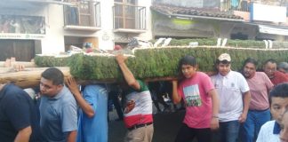 Arriban pobladores de Teocelo con flor de cucharilla para arco floral