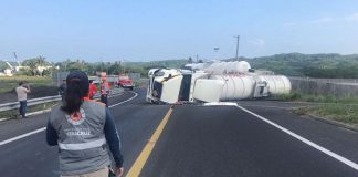 Vuelca pipa con +60 mil litros de Diesel en Veracruz