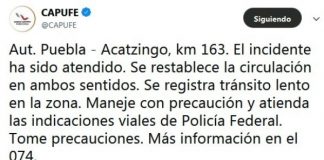 Abren la autopista Orizaba-Puebla luego de fuga de gas
