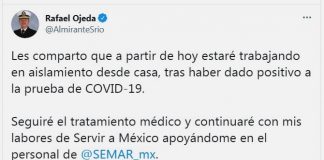 Secretario de Marina dio positivo a Covid-19, «estaré en aislamiento»