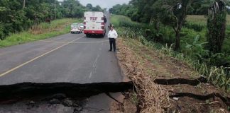 Reportan socavón en carretera de Las Choapas