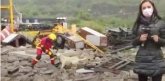 Bombero y perrito pelean por un trapo mientras reportera hacía transmisión...