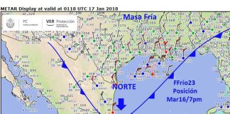 Lunes de Norte con rachas de 80 Km/h por paso del…