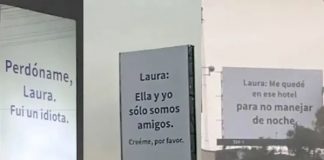 Infiel pide disculpas por medio de mensajes en espectaculares