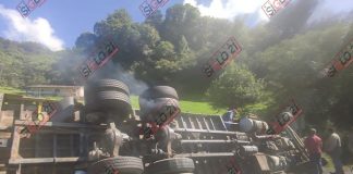 Volcadura de camión revolvedor a la altura de La Veguilla