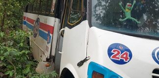 Autobús se sale del camino y queda en predio, a punto...